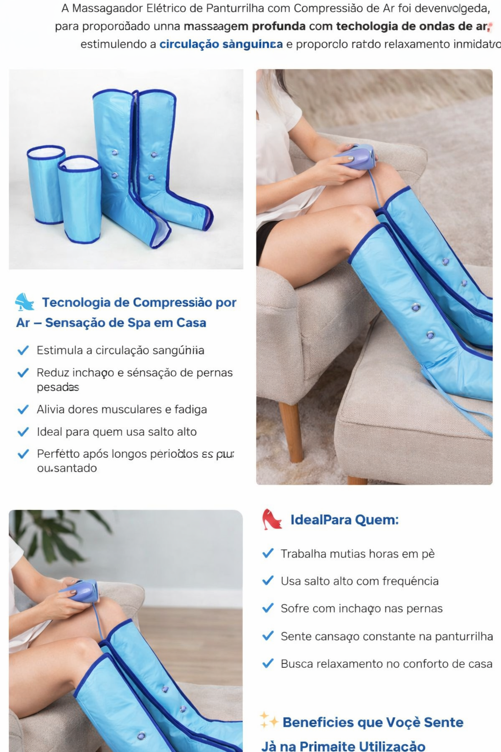 Com tecnologia de compressão por ar, o sistema infla e desinfla suavemente, simulando uma massagem profissional que: